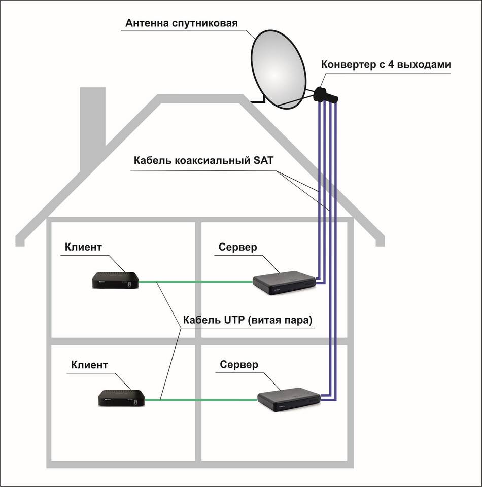 - Спутниковая антенна (тарелка) диаметром 55-60 см